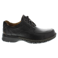Stay ultra-comfortable with the Clarks Un.Bend oxford. This men's casual shoe features a premium full grain leather upper with four-eyelet lacing. A removable leather insole offers support and comfort, while the soft leather lining prevents irritation. A flexible EVA sole with rubber pads reduces foot fatigue while it provides traction. Part of the Unstructured collection, the Clarks Un.Bend slip-on features the Clarks Air Circulation System: intake vents allow cool, fresh air to enter the shoe and channeled mesh creates a defined path for warm, moist air to escape through exhaust vents.